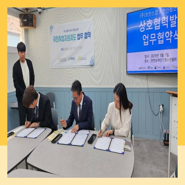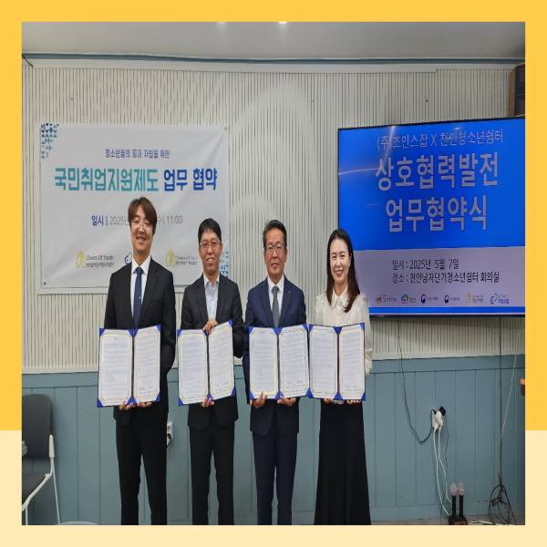 õ¾Èû¼Ò³â½°ÅÍ¿Í (ÁÖ)Á¶ÀνºÀâÀº »óÈ£ Á¸Áß°ú ½Å·Ú¸¦ ¹ÙÅÁÀ¸·Î Ãë¾÷ Áö¿øÀÌ ÇÊ¿äÇÑ Ã»¼Ò³âµéÀ» À§ÇÑ ¾÷¹« Çù¾àÀ» ¸Î¾ú½À´Ï´Ù.