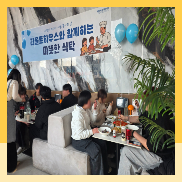 ´õ¸ôÆ®ÇϿ콺 õ¾ÈºÒ´çÁ¡ÀÇ ÃÊ´ë·Î Áö³­ 2¿ù 20ÀÏ(±Ý) ¿ì¸® û¼Ò³âµéÀÌ Æ¯º°ÇÑ Á¡½É ½Ä»ç ÀÚ¸®¸¦ °¡Á³½À´Ï´Ù.