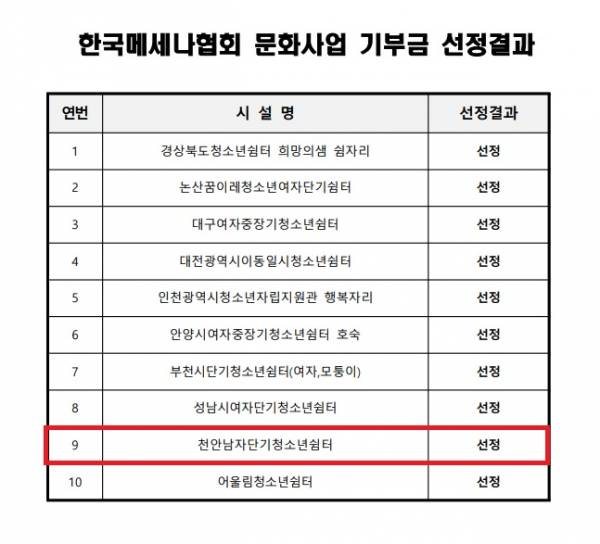 û¼Ò³âº¹Áö½Ã¼³(û¼Ò³â½°ÅÍ, û¼Ò³âÀÚ¸³Áö¿ø°ü) Çѱ¹¸Þ¼¼³ªÇùȸ ¹®È»ç¾÷ ±âºÎ±Ý Áö¿ø»ç¾÷ ¼±Á¤