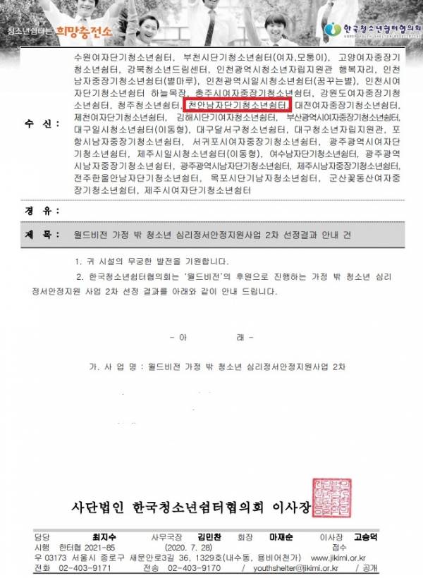 [¿ùµåºñÀü] °¡Á¤ ¹Û û¼Ò³â ½É¸®Á¤¼¾ÈÁ¤Áö¿ø»ç¾÷ ¼±Á¤(21.07.28.)