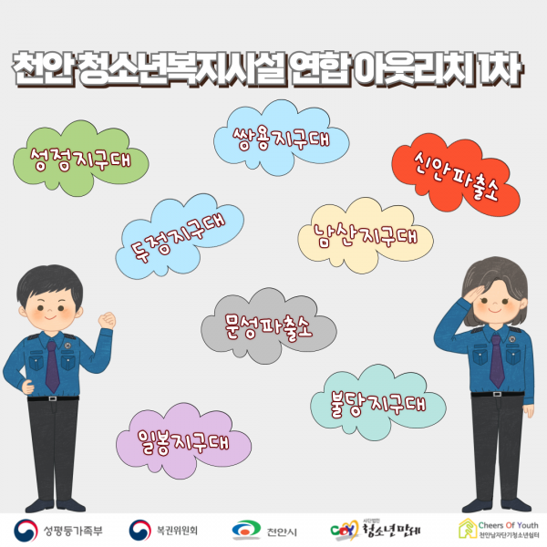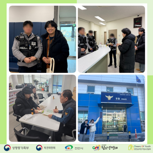 2026³â 1¿ù 29ÀÏ Ãµ¾È³²Àڴܱâû¼Ò³â½°ÅÍ¿Í Ãµ¾È¿©Àڴܱâû¼Ò³â½°ÅͰ¡ Ãß¿î °Ü¿ï õ¾È Áö¿ª ³» Áö±¸´ë¿Í ÆÄÃâ¼Ò¸¦ ¹æ¹®Çß½À´Ï´Ù. û¼Ò³âµéÀº ¿©·¯ »ç°¢Áö´ë¿¡¼­ »çȸÀû À§ÇèÀ¸·ÎºÎÅÍ À§ÇùÀ» ¹Þ°í ÀÖ½À´Ï´Ù. Áö¿ª ³» Ä¡¾È°ú À§±â »óȲ¿¡ ´ëÇÑ º¸È£¸¦ ´ã´çÇϰí ÀÖ´Â °æÂûºÐµéÀ» ¸¸³ª û¼Ò³â½°ÅÍ¿¡ ´ëÇØ ¾È³»Çϰí, ´ë»ó û¼Ò³âµé¿¡ ´ëÇØ ¾È³»ÇÔÀ¸·Î½á ¾ÕÀ¸·Î ¿¬°èÇù·Â °­È­¿¡ Èû¾µ °ÍÀ» ¾à¼ÓÇÏ´Â ½Ã°£ÀÌ µÇ¾ú½À´Ï´Ù. ¸ðµç °æÂû ºÐµé²²¼­ Àû±ØÀûÀ¸·Î À̾߱⸦ µé¾îÁֽðí, û¼Ò³âµéÀ» À§ÇÑ ¿­ÀǸ¦ º¸¿©Áּż­ °¨»çÇÑ ¸¶À½À¸·Î Ȱµ¿À» ¸¶Ä¥ ¼ö ÀÖ¾ú½À´Ï´Ù.