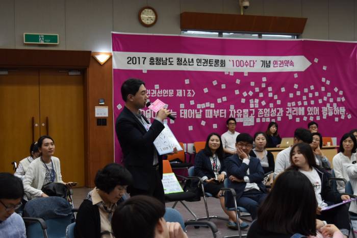 2017³â 5¿ù 16ÀÏ, õ¾Èû¼Ò³â½°ÅÍ ¾ÆÀ̵éÀº ¼±»ý´Ôµé°ú ÇÔ²² Ãæ³²Ã»¼Ò³âÁøÈïȸ ÁÖÃÖÀÇ '2017³â ÃæÃ»³²µµ û¼Ò³â ÀαÇÅä·Ðȸ(100¼ö´Ù)'¿¡ Âü¼®ÇÏ¿´½À´Ï´Ù. ÀÌ ³¯ ÀαÇÅä·Ðȸ¿¡´Â '±è ¿¬' µµÀÇ¿ø´ÔÀ» ºñ·ÔÇÑ µµÀÇ¿ø´Ôµé°ú ±èÁöö ±³À°°¨´Ô(Ãæ³² ±³À°Ã») µîÀÇ ÀλçºÐµéÀÌ Âü¼®ÇØ Áּ̽À´Ï´Ù. µÎ ºÐÀÇ µµÀÇ¿ø´Ôµé²²¼ û¼Ò³âµé·ÎºÎÅÍ Ã»¼Ò³âÀαǰú °ü·ÃÇÑ Á¦Á¤¾Èµé°ú ÀǰߵéÀ» µè°í ´äº¯ÇÏ´Â ½ÄÀ¸·Î Åä·ÐÀÌ ÁøÇàµÇ¾ú½À´Ï´Ù. ÀúÈñ ½°ÅÍ Ã»¼Ò³âµé°ú ¼±»ý´Ôµéµµ °¢ÀÚÀÇ »ý°¢À» ¼Ò½Å²¯ ÆîÃĺ¸¿´À¸¸ç ƯÈ÷ ´Ü±â³²ÀÚ½°ÅÍÀÇ ±è»ó¹é ÆÀÀåÀº °¡Ãâû¼Ò³â Àαǿ¡ °üÇÏ¿© ¹ß¾ðÇÏ´Â ±âȸ¸¦ °®±âµµ Çß½À´Ï´Ù. À̹ø Åä·Ðȸ¿Í °°ÀÌ Ã»¼Ò³âµéÀÌ Á÷Á¢ Á¤Ã¥ °áÁ¤¿¡ Àǻ縦 Ç¥¸íÇÒ ¼ö ÀÖ´Â ÀÚ¸®°¡ ¸¹¾ÆÁ³À¸¸é ÁÁ°Ú´Ù´Â »ý°¢À» ÇØ º¾´Ï´Ù. ¶ÇÇÑ À̹ø Åä·Ðȸ¸¦ ÅëÇØ Á¦½ÃµÈ û¼Ò³âµé°ú »çȸ¿¡ À¯ÀÍÇÑ ¾È°ÇµéÀÌ ¾ÕÀ¸·ÎÀÇ Á¤Ã¥°áÁ¤¿¡ ÀûÀýÈ÷ ¹Ý¿µÀÌ µÇ¾î û¼Ò³âµéÀÇ ÀαÇÀÌ Ä§ÇØ¹Þ´Â ÀÏÀÌ Á¶±Ý¾¿ »ç¶óÁú °ÍÀ» ±â´ëÇØ º¾´Ï´Ù.
