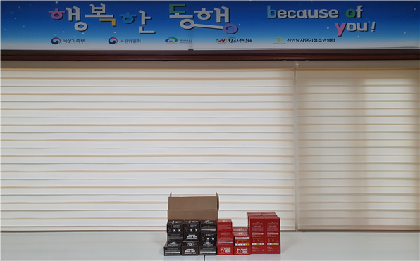 Çѱ¹Ã»¼Ò³â½°ÅÍÇùÀÇȸ¿¡¼ õ¾È³²Àڴܱâû¼Ò³â½°ÅÍ ¾ÆÀ̵éÀ» À§ÇØ Çì¾îÁ¦Ç°(¿Î½º1box ¹× ¿¡¼¾½º9°³, µÎÇÇÆÑ16°³)¸¦ ÈÄ¿øÇØÁּ̽À´Ï´Ù. ÇÔ²² 'µ¿Çà'ÇØ ÁØ Çѱ¹Ã»¼Ò³â½°ÅÍÇùÀÇȸ¿¡ °¨»çµå¸³´Ï´Ù.