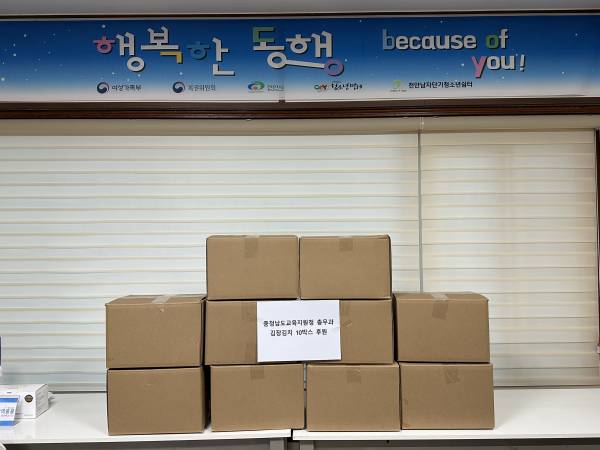 Ãæ³²±³À°Áö¿øÃ» Ãѹ«°ú¿¡¼ õ¾È³²Àڴܱâû¼Ò³â½°ÅÍ ¾ÆÀ̵éÀ» À§ÇØ ±èÄ¡ 10¹Ú½º¸¦ ÈÄ¿øÇØÁּ̽À´Ï´Ù. ÇÔ²² 'µ¿Çà'ÇØÁÖ½Å Ãæ³²±³À°Áö¿øÃ» Ãѹ«°ú¿¡°Ô °¨»çµå¸³´Ï´Ù.
