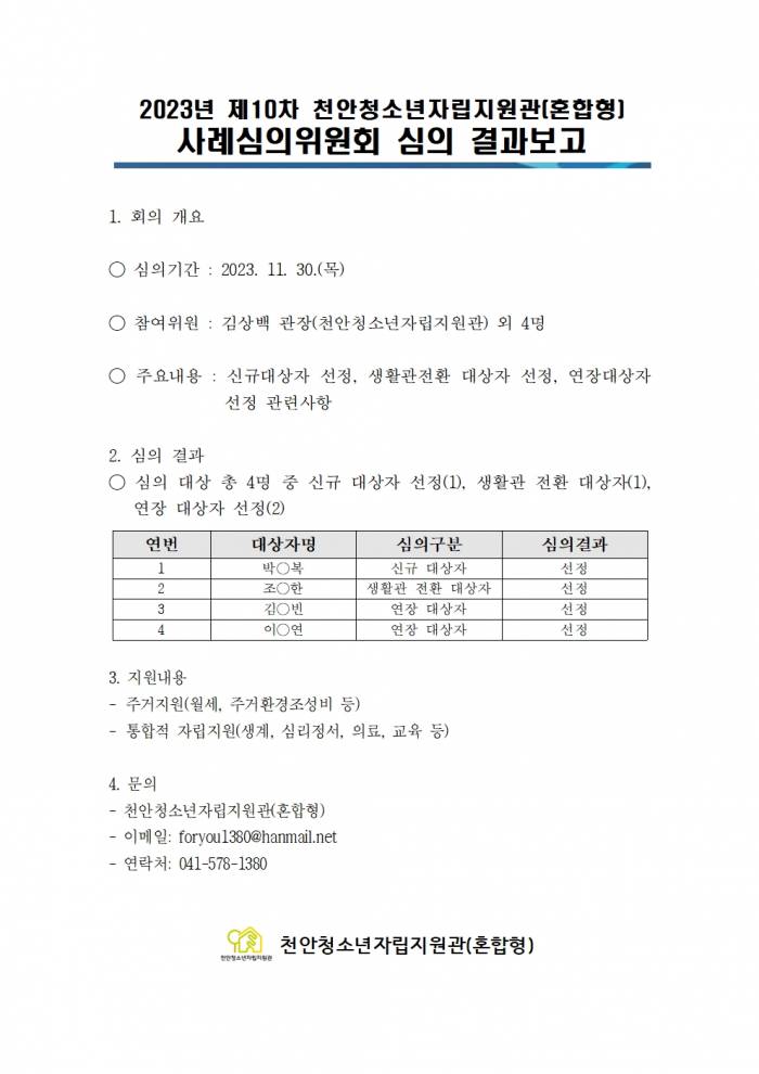 õ¾Èû¼Ò³âÀÚ¸³Áö¿ø°ü 2023³â Á¦10Â÷ »ç·Ê½ÉÀÇÀ§¿øÈ¸ ½ÉÀÇ °á°ú º¸°í