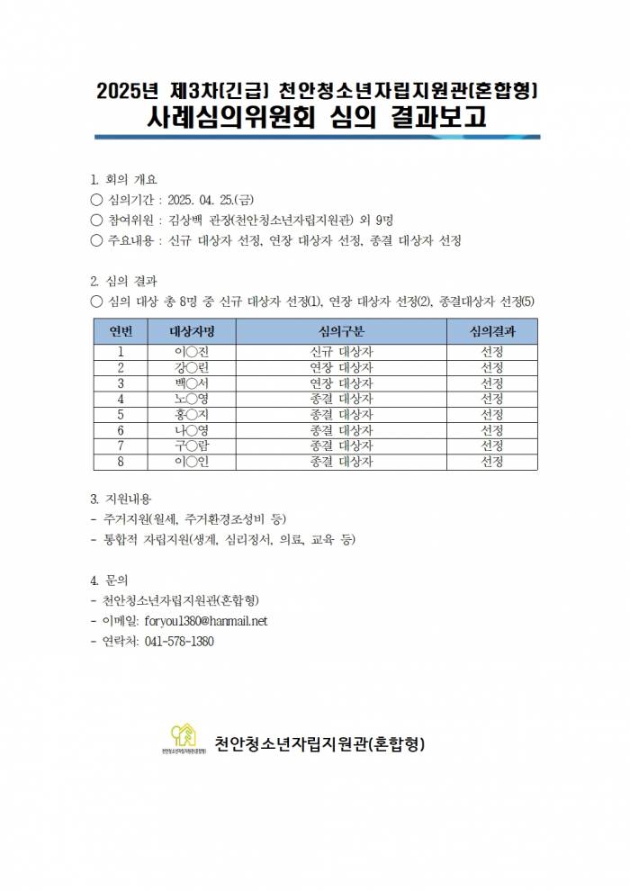 2025³â Á¦3Â÷(±ä±Þ) õ¾Èû¼Ò³âÀÚ¸³Áö¿ø°ü(È¥ÇÕÇü) »ç·Ê½ÉÀÇÀ§¿øÈ¸ ½ÉÀÇ °á°úº¸°í
