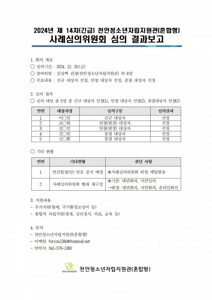 2024³â Á¦14Â÷(±ä±Þ) õ¾Èû¼Ò³âÀÚ¸³Áö¿ø°ü(È¥ÇÕÇü) »ç·Ê½ÉÀÇÀ§¿øÈ¸ ½ÉÀÇ °á°úº¸°í