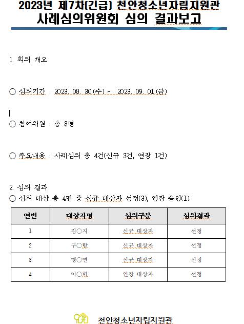 2023³â Á¦7Â÷(±ä±Þ) »ç·Ê½ÉÀÇÀ§¿øÈ¸ °á°úº¸°í